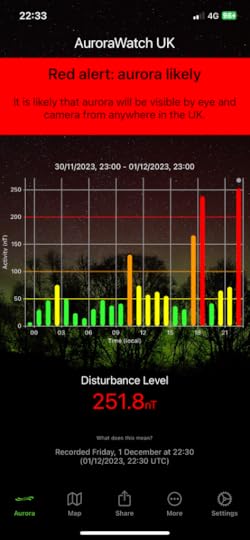 As if the moon wasn’t excitement enough, I received a red aurora alert not long after setting off, and I also managed to get a good photo of that. What an experience. I was feeling pretty happy by the time I pitched my tent and got settled into my sleeping bag around 9.30pm, with two hot water bottles and a stick-on heat patch, ready for a chilly night.