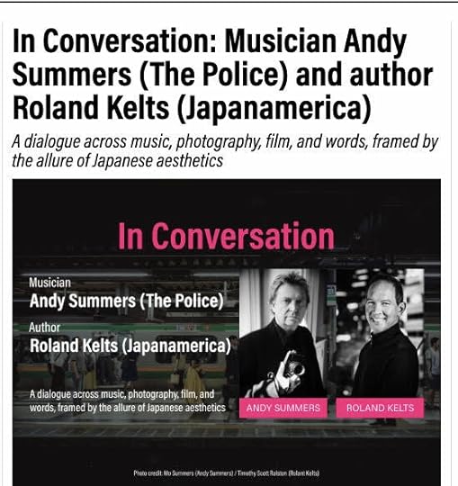 IN CONVERSATION with musician, photographer, author Andy Summers (The Police) Oct. 7 for Asia Society Japan at I-House Tokyo