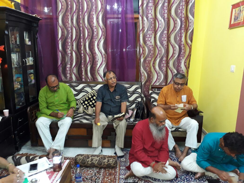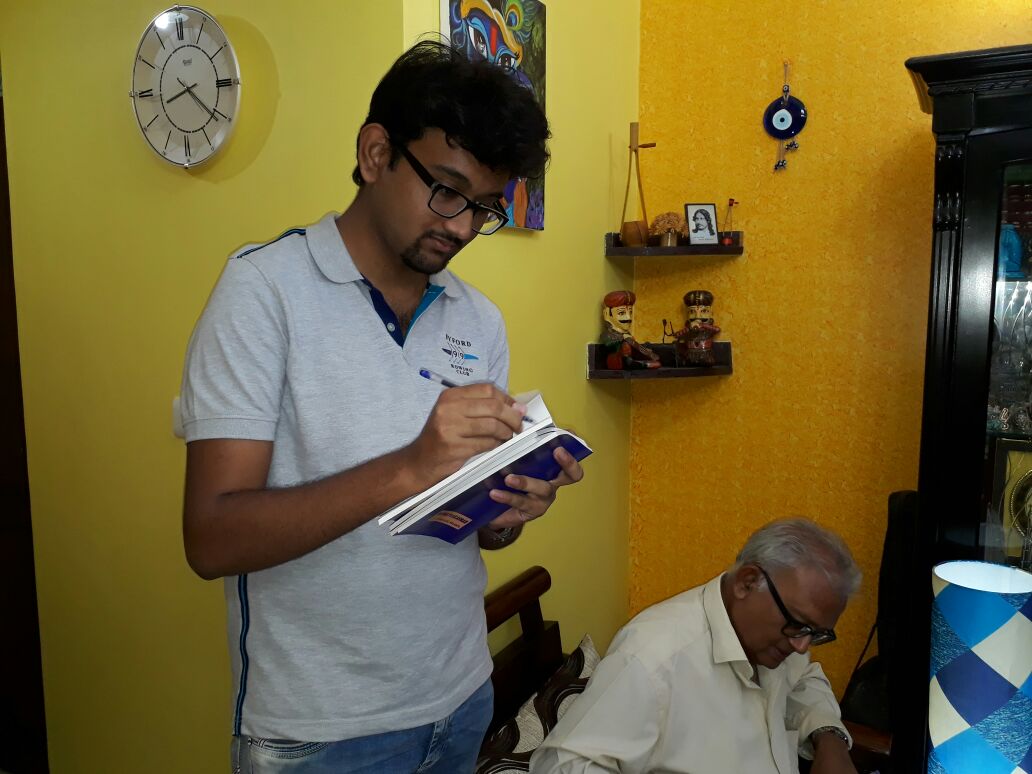 Me signing the copies of Laments and Virtues. In the chair- Mr Kishore, a senior Bottola member