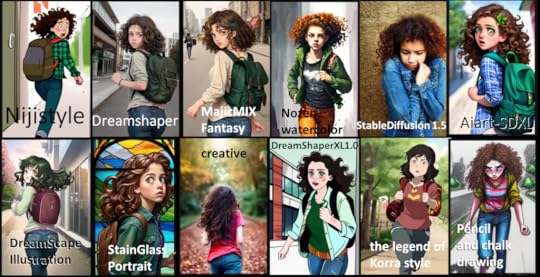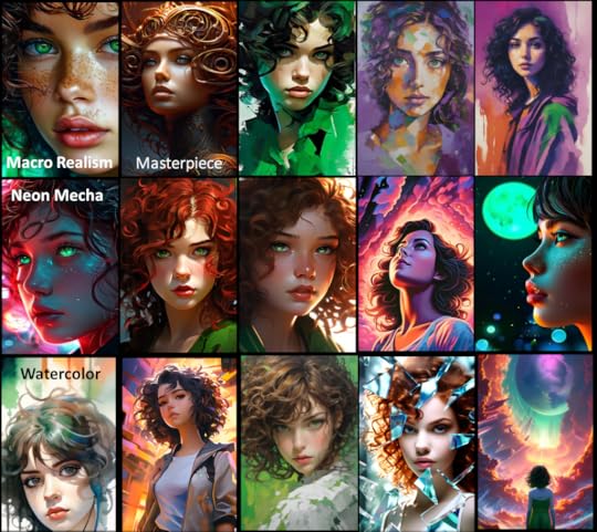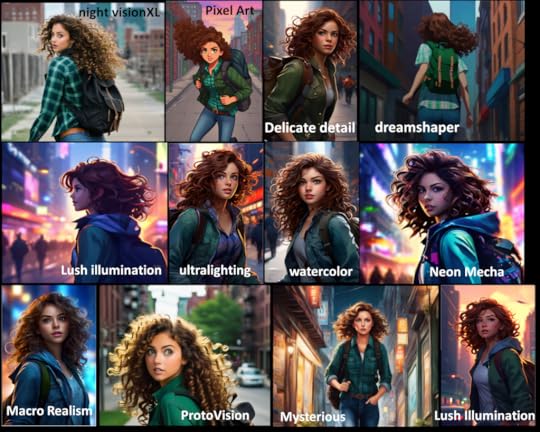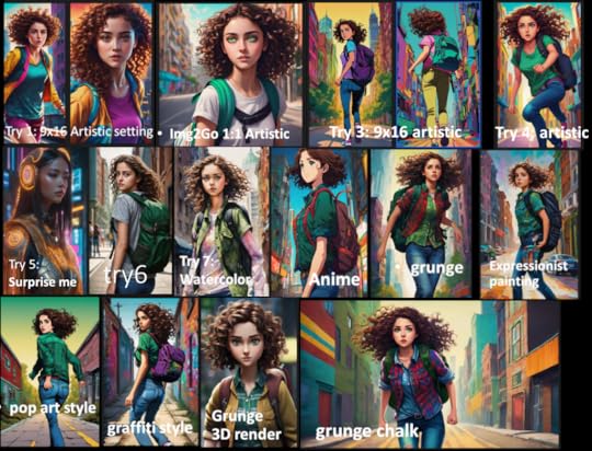 ConclusionI was able to make over 150 images in about 3 evenings. After all my previous failed attempts at making covers I like, with each attempt taking several days, it was wonderful. AI was not good at following drama cues, and had issues with limbs. Some of the images I made had smeared noses and ears, but in general, the faces were nice. AI was also not good at more than one person at a time. As a test I tried using Playground to make a cover with five friends and described each friend (height, sex, hair and eye color). It ended up give me 2 friends with a combination of the descriptors I input. In other words, my African-American character was suddenly wearing glasses. It’s really amazing that AI can make such beautiful images. Even if the images are not perfect, AI is an excellent tool to brainstorm and provide starting images to create the perfect cover.