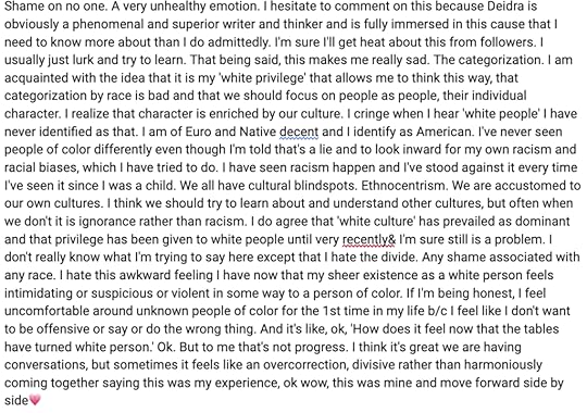 The other day, Erin reached out to tell me she didn’t like the way I talked about white people. She didn’t like that I was using generalizations. She didn’t think it was fair. I respect her right to feel how she felt.