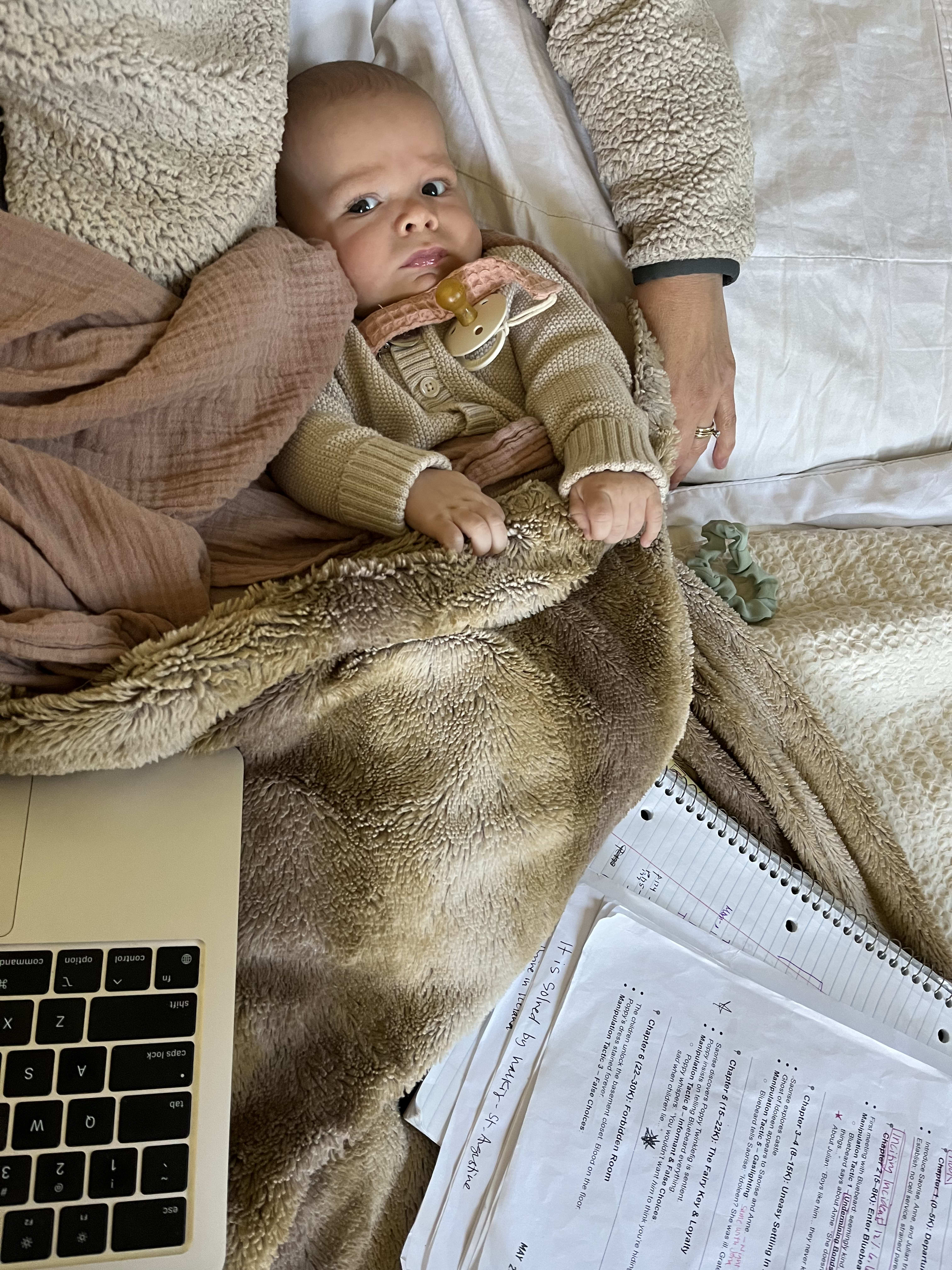 My accountability writing buddy: Baby Hal is visiting from Montreal and has reminded me that writing during a baby’s unpredictable twenty minute cat nap translates to words on the page and is exactly what will write the novel - something scrolling will never do!