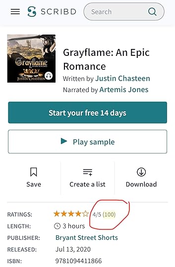 Grayflame hit 100 audiobook reviews! Never did I imagine that would happen, and never did I imagine it would hold 4 stars! Thanks to everyone who listened and supported along the way. I haven’t had anything published for a while. I’m still working on my novel. Thanks for the inquiries!