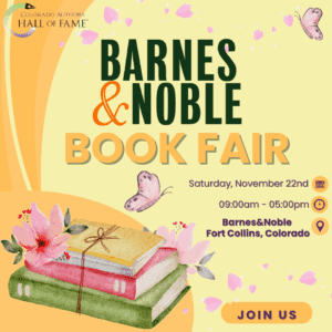 Join me and other award-winning and best-selling local authors at the Barnes & Noble Book Fairs in support of the Colorado Authors’ Hall of Fame. The signing events will feature local authors of all genres including children’s books, young adult fantasy, historical fiction, romance, and more. For any purchase that you make at each respective bookstore that day, Barnes & Noble will contribute to the Aspiring Authors Scholarships sponsored by the Colorado Authors’ Hall of Fame.