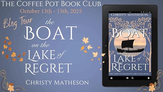 I’m delighted to host Christy Matheson as the featured author in The Coffee Pot Book Club Blog Tour being held between October 13th – 15th, 2025. Christy Matheson is the author of the Fairy Tale Retelling / Historical Fiction, The Boat on the Lake of Regret (The Castle in Kilkenny: Fairy Tales), independently published by Christy Matheson on July 15th, 2025 (210 pages).