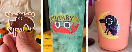 New StickersMy Etsy shop was long overdue for some new items. A few weeks ago I spent time painting and cutting up papers to create three new vinyl stickers: Crabby Crab, Moose, and Raven.