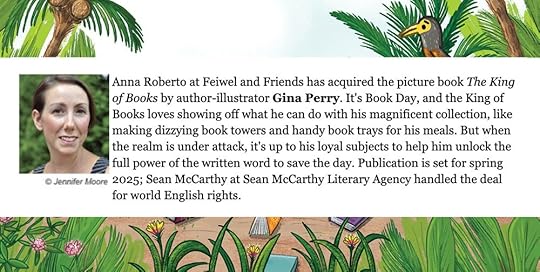 I am beyond excited to share the announcement for my new author/illustrator picture book, THE KING OF BOOKS. Coming in Spring 2025 from Feiwel & Friends. One morning in the summer of 2020 I woke up with a character’s voice and a full plot in my head for a book. This had never happened before! Thank goodness I ran to get paper and a pen. The story changed many times over the course of two years before sending it out on submission, but if I hadn’t jotted it all down and taken a silly idea seriously, it wouldn’t be on its way to being a real book. So the moral is: write it down and allow yourself to play with silly ideas. I’m really looking forward to spending the fall immersing myself in this book and working with my editor to make it the best it can be.