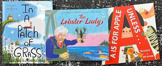 Reading: Above are the picture books I picked up at the Camden Book Fair. Author Fran Hodgkins’ IN A PATCH OF GRASS. I love the illustrations by Dan Tavis and it’s an energetic, dramatic read-aloud with fun bug facts (and informative bug back matter!) THE LOBSTER LADY by Alexandra D. Hinrichs, illustrated by Jamie Hogan. I was holding out all summer so I could get my copy signed by author and illustrator. It’s even better than I hoped - beautifully illustrated, a sweeping story of living a big, authentic life and finding purpose. And A IS FOR APPLE UNLESS… written by Tom Llewellyn and illustrated by friend Mark Hoffmann. Mark’s illustrations are dynamic and cute but definitely appeal to the kids looking for a little bit of ‘ewww’ humor from A to Z. Love that cute monkey!