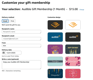 With a subscription, you give them the flexibility to pick any audiobook with a monthly credit—plus access to even more benefits. One of the things I really like is that the gift membership doesn’t auto-renew, so there are no subscription surprises.