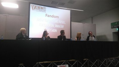 Then, in a true baptism of fire, I went straight onto the 'Fandom' panel. This was chaired by the lovely Lucy Saxon (dressed in Harry Potter gear above), and included Maggie Harcourt, Rebecca Denton and Chris Russell, all of whom were so welcoming and funny. This panel went really fast, and cos there were fewer of us, it felt a little more conversational than the first. I'm still chuckling over everyone's embarrassing fandom moments. Chris actually collected November rain in a jar he loved Guns n Roses so much... not that I blame him.