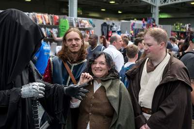 The next thing which took me by surprise was just how good the cosplayers' costumes were. I'd done loads of research about cosplay for THE FANDOM, and as an avid performer in pantomimes, musicals and cabarets, I'm totally at one with the idea of grown-ups dressing up together, but I was totally unprepared for the scale and quality of these cosplay outfits. I managed to get a few snaps of some of some of my favourites, but too be honest, I was too scared to ask some of them. I mean, giant alien from, well, Alien, does not look like the kind of extra-terrestrial who would pose and say cheese!