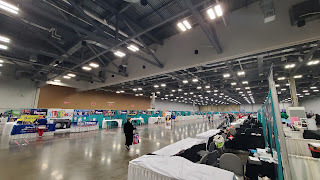 There was even a full size wresting ring.Starbase Indy, another new to me event, was also fun, but in a much more relaxing and productive way. The event table was free so all I had to do was cover my gas and hotel room - which I did do with sales. I travel with my own food. Foot traffic was slow (as is usually the case with hotel cons), but the people were great and unlike a busy show, I didn't feel bad about getting some reading and writing done at my table. I also got a good deal done after show hours. So as far as a weekend writing retreat goes, it paid for itself and I slept great. I would maybe do this one again if I could take another author along to share the hotel expenses with the intent of making it a writing weekend.