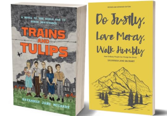 Today is my 26th birthday, and I’m going to be like a hobbit and give you gifts on my birthday! While Trains and Tulips will be available to pre-order until September 20th, there is an early bird special available today only! For $26 (plus shipping), you can get a full color paperback of Trains and Tulips plus a paperback copy of my nonfiction book Do Justly, Love Mercy, Walk Humbly. And there are digital thank you gifts for everyone who pre-orders Trains and Tulips: an illustrated short story about one of the side characters in the book and an mp3 download of my sister Sophia McCrary’s song “Running Through a Field of Tulips.”