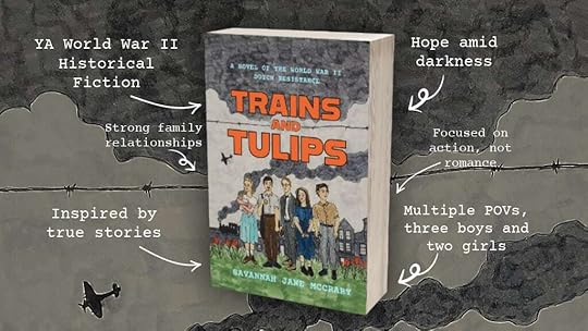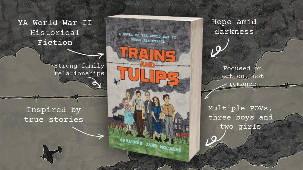 Trains and Tulips is Christian Young Adult historical fiction set in the Netherlands during World War II and follows five young people who each become involved in the Resistance against the Nazis.