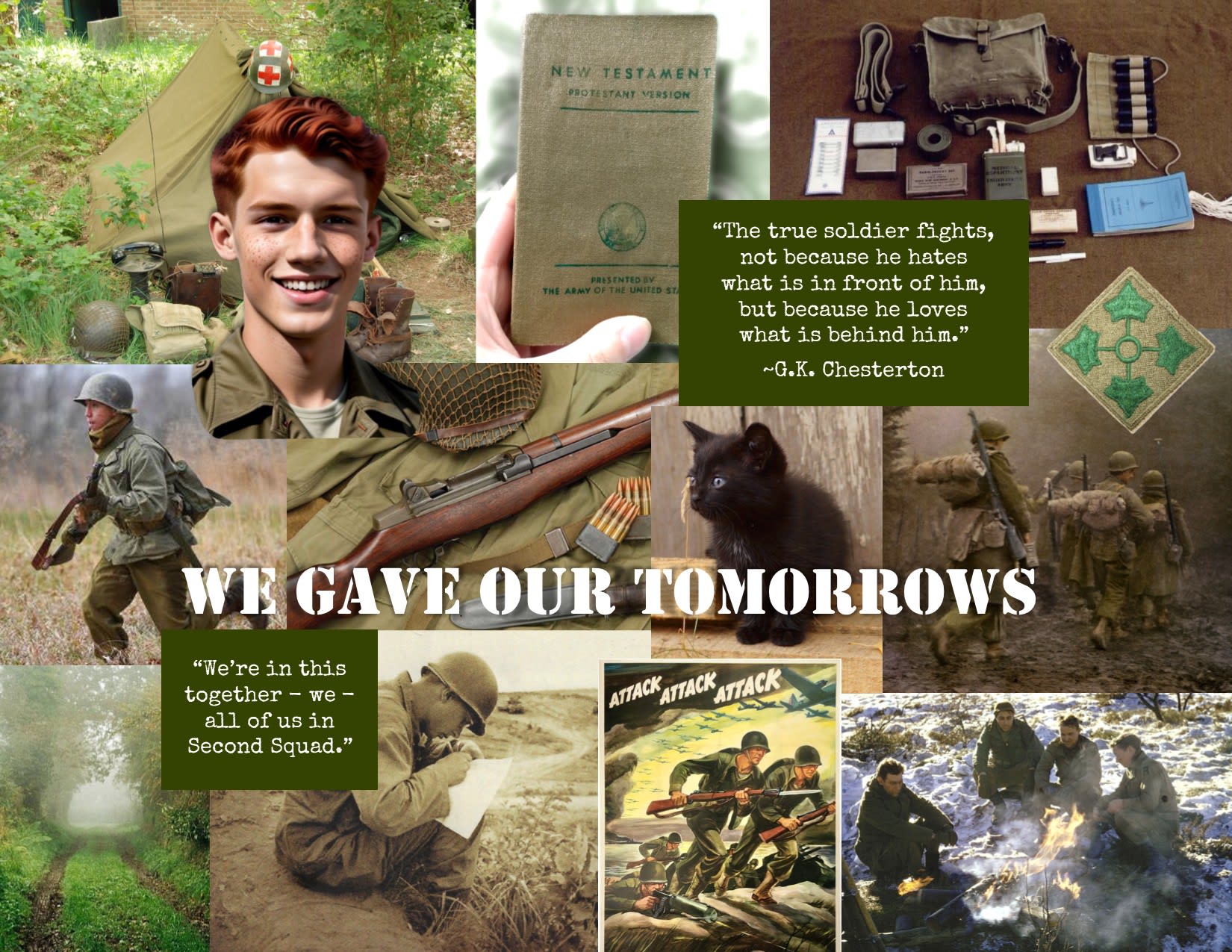 We Gave Our Tomorrows was inspired by a board game I played with my dad and brother, in which we took a squad of American soldiers through the whole of WWII in Europe, from June 1944 to V-E Day. After the very first battle we played out, I knew this had the potential to make a great story, so I started taking notes about everything that happened in the game. That was the easy part - taking all those notes and turning it into a full, fleshed-out story was quite a challenge sometimes!