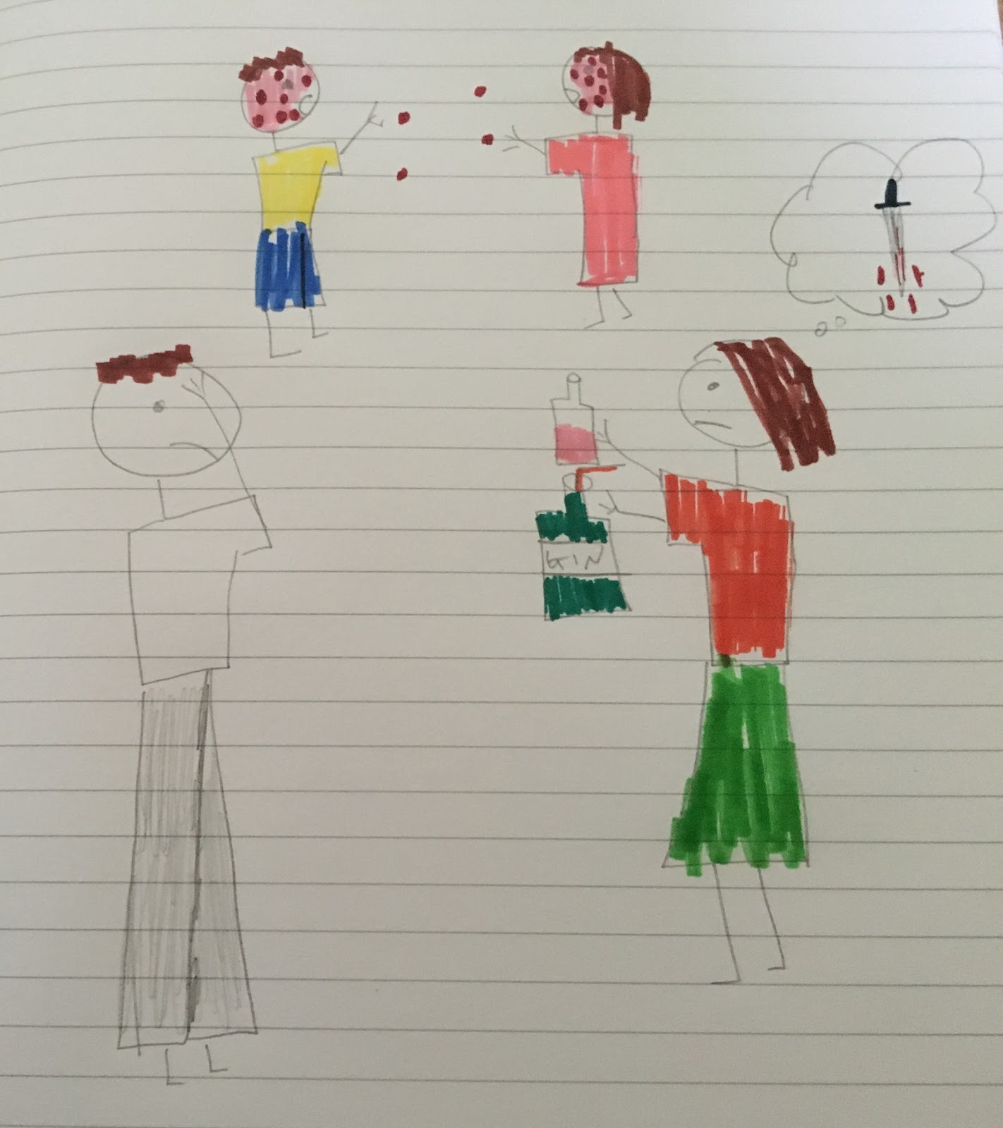 "Five more days of this?" thinks Mummy, and orders a case of gin online.