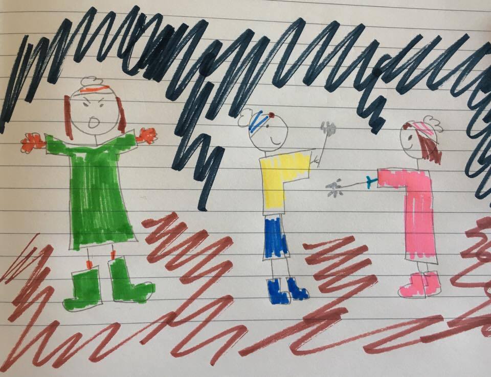 Their new fun game is to flick their own scabs at each other and then scream about it.