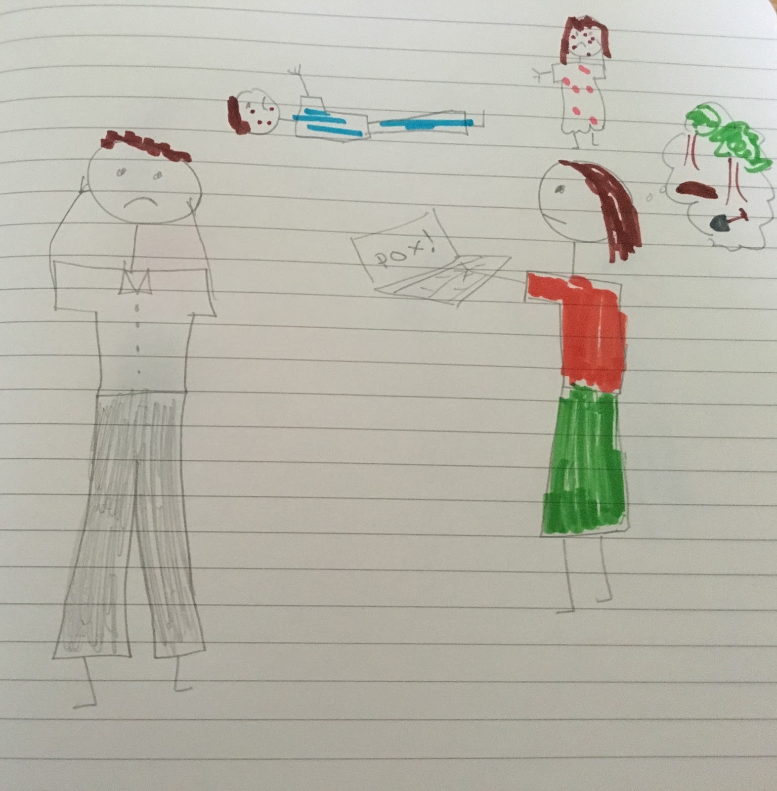 Mummy and Daddy and Peter and Jane are home from the firework display.