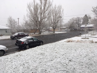 Now I'm back in good ol' Cody where it's snowing, and . . .