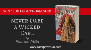 It’s January. It’s cold, the holidays are over, and it’s income tax season. We need an escape, right? How about curling up with a great new historical romance release! I’m so excited to be offering a copy of NEVER DARE A WICKED EARL by Renee Ann Miller. This highly anticipated debut will be available in print and ebook on January 30th. If you want to win a copy to have just as soon as it’s available, ENTER HERE for your chance to win it! I’ll give the winner their choice of print or digital...