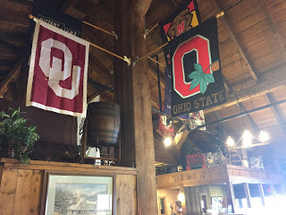 We snapped pictures right away and then noticed the OU flag hung directly across from Ohio State’s. Our Oklahoma Sooners would play the Buckeyes in a couple of weeks. The meeting in Columbus, Ohio would be big.