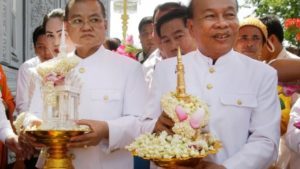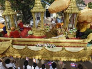 The Royal family and dignitaries arriving at the Oudong Temple to return the Golden Urn to the shrine.