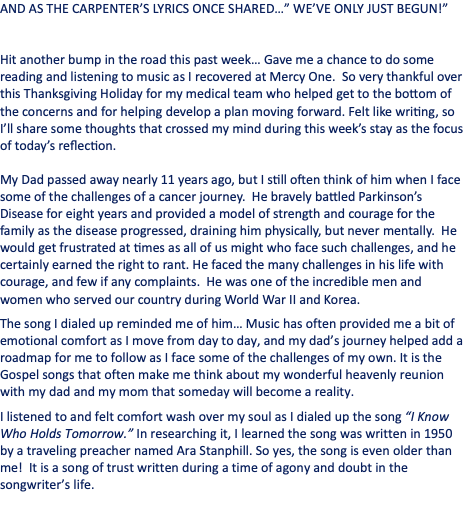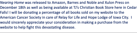 David Welter A number of those on my "HOME TEAM" encouraged me to share my reflections and experiences so that others might experience hope and comfort for themsel…moreA number of those on my "HOME TEAM" encouraged me to share my reflections and experiences so that others might experience hope and comfort for themselves or loved ones who may be struggling with cancer. You can find my blog on my website www.reflectionsfromthehometeam.com/(less)