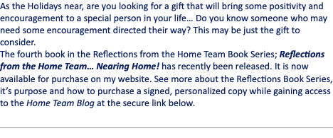 Reflections from the Home Team… Go the Distance is one man’s story of surviving cancer written to offer compassion, hope, and strength for others who may face similar health battles. The book will offer encouragement to readers who may find themselves in a catastrophic health situation such as the author faced with his cancer diagnosis in the spring of 2009. Oftentimes people cling to any bit of hope they may see in others in their similar situation, and this book provides many examples of that hope.