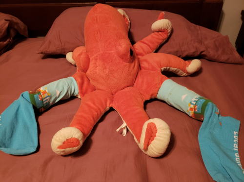 • This evidence of The Daughter’s inexplicable need to put socks on a stuffed octopus