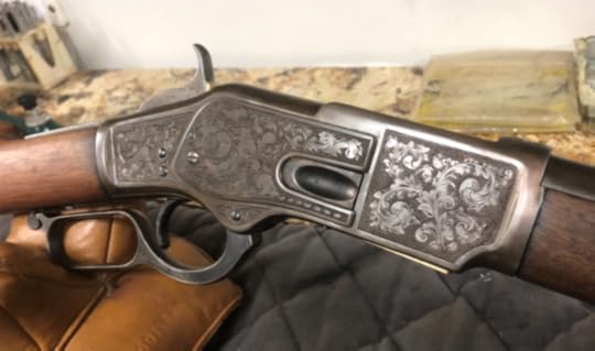 The things mentioned above are fairly recent developments. That’s because in the first few months of the lockdown, my activities were limited to reading, sleeping and spending loads of time in the kitchen. Glen, however, was much more productive. As soon as we went into self-isolation, he returned to his creative first love, which is hand engraving. Take a look at the gorgeous work he did on this 1873 Winchester: