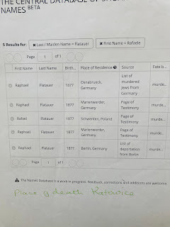 At the station, did they meet others, known faces? Did Raphael help his wife to clamber aboard the cattle truck, find a place to sit as it filled up with terrified families, all of whom would have been known to them? I try not to imagine that journey, days with little food, no water, perhaps a latrine bucket that would have slopped over onto the filthy straw. Human beings treated worse than cattle, robbed of their possessions and their dignity as the train bore them onwards out of their town, out of their country, toward the Polish concentration camp.