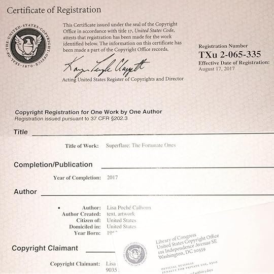 This is an author's dream come true! I worked so hard and for so long on Superflare: The Fortunate Ones that holding its official US copyright in my hands moved me to tears. #itwasagoodday