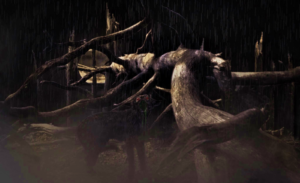 As the sun sank low, Mary finally found herself on the far side of the mountain. She saw the well, wreathed in evening mist. Mary let her bucket down into the well and cranked it back up. she could see that there was something in her bucket, but it wasn’t water. As she pulled it from the well, she saw it was a human skull. A sinister light shone from its eye sockets.