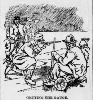 A bunch of live turkeys had been cooped up in the rear of the Schneider meat market, and yesterday morning employees of the place proceeded to dress them. In the scrimmage, one of the largest of the birds escaped into the open. Using his long-neglected power of flight, he soared out over the street and up to the roof of the Ferre building opposite. There he alighted and sat in serenity. The question of how to get him down seemed at first a serious one. But soon some one suggested to a group of men in the [nearby] gun store the practical idea of “sniping” the bird. No sooner said than done, and in a minute there was the short crack of a rifle shot ringing out over West Front street, and his bird-ship came tumbling to earth. His demise was quick and painless, and a good Thanksgiving dinner was saved to some one. The incident attracted considerable attention in the vicinity.