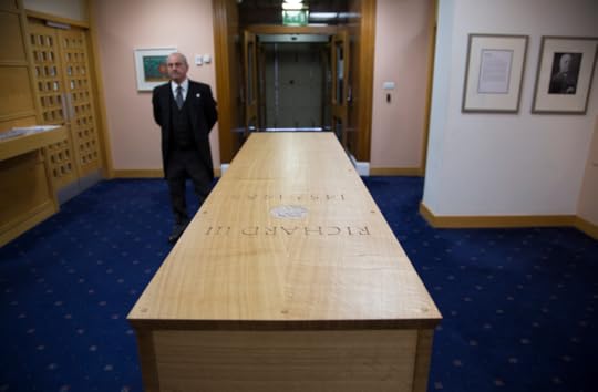 Today, as notified in this post by the Richard III Society, is the tenth anniversary of of the day when Richard’s remains were placed in their coffin prior to his lying in state in Leicester Cathedral and the formal reburial ceremony on 26 March.