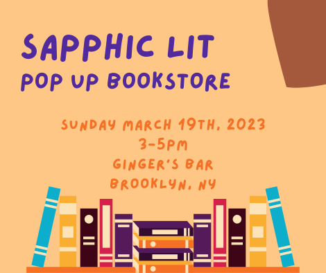 Come join us at the next Sapphic Lit Pop Up BookstoreGinger’s Bar, Brooklyn, NY March 19, 2023 3-5 PMAll Are Welcome. Books + Beer + 10 Sapphic Lit Authors