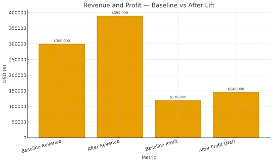 For example, use conservative assumptions and include tool costs in your model. Here’s how a 30% revenue lift affects profit at steady spend: