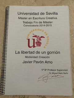 1.- La libertad de un gorrión fue mi Trabajo Final de Máster en el Máster en Escritura Creativa que cursé en la Universidad de Sevilla en el curso 2014 – 2015. Fue el mejor año de mi vida y completé uno de mis sueños desde chico: escribir una novela.