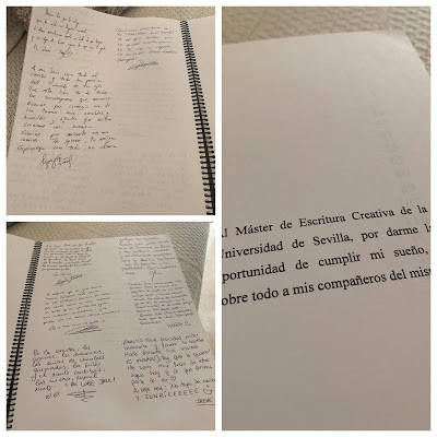 20.- Después la presenté en Sevilla, donde cursé el Master de Escritura Creativa. Vinieron mis amigos del mismo, mis primas y hasta el que fue mi tutor del Trabajo Final del Máster, redimiéndose de su error por no venir a la exposición del mismo. Fue, quizás, la presentación más bonita de todas.