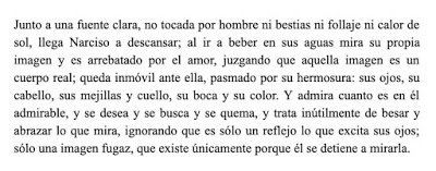 7.- La novela nace al darle la vuelta al mito de Narciso, quien se enamoró de su propio reflejo. En La libertad de un gorrión, el protagonista odia quien es. Así nos contaba Ovidio la historia de Narciso: