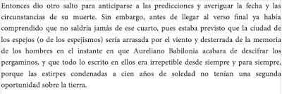 13.- Intenté que el final de La libertad de un gorrión se pareciera -pero conservando las distancias, obviamente- al de Cien años de soledad de Gabriel García Márquez, que es este que podéis leer aquí: