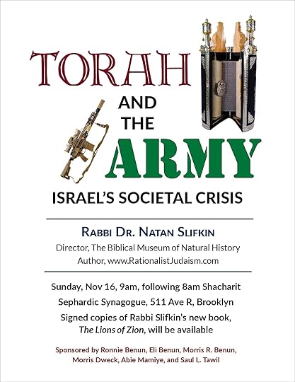Finally, we can take a break from charedim and army and get back to my planned posts! But first, some announcements about my presentations next week in Lawrence, Teaneck, Monsey and Brooklyn: