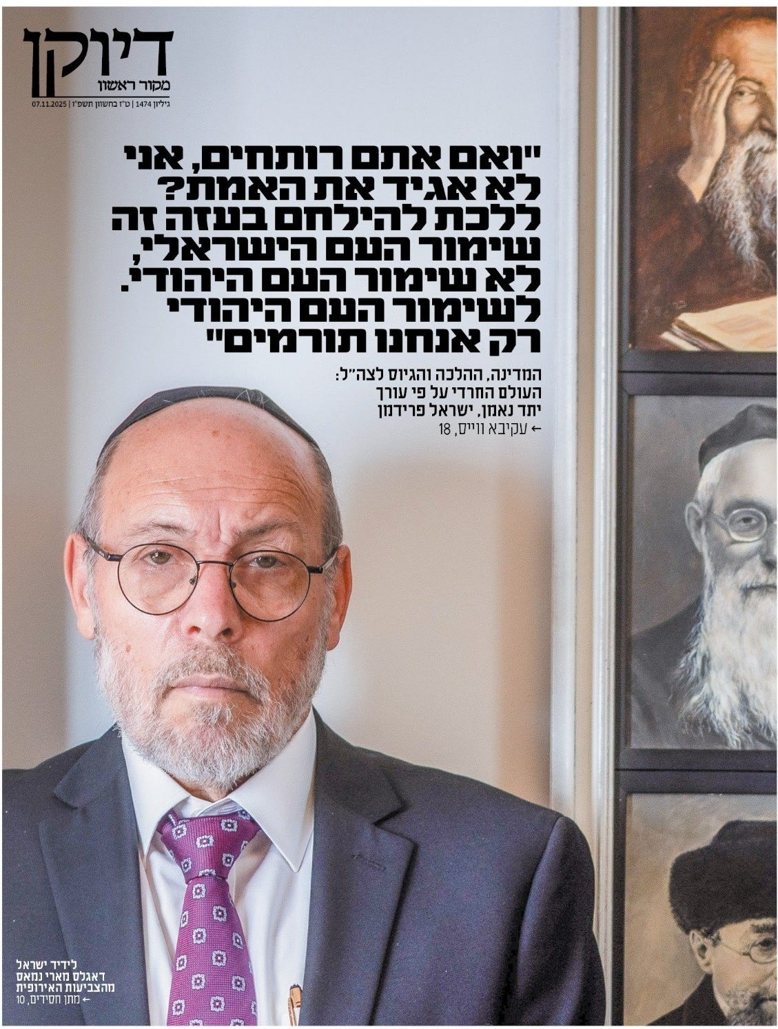 Makor Rishon, Israel’s leading national-religious newspaper, just published an extroardinary interview with the editor of the Israel edition of Yated Ne’man. You can read the original article in Hebrew at this link, and you can download an English translation (lightly edited from ChatGPT) with a few interspersed comments by myself below. I have to warn you, you might find what he has to say profoundly depressing. But I think that it’s great that they publicized the worldview of the charedi leade...