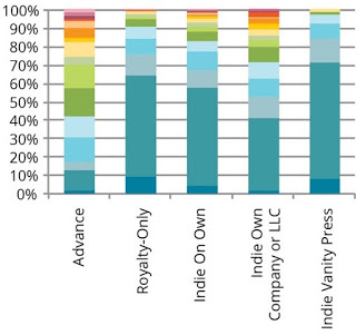 Book sales won’t make you rich:Don’t take my word for it—check out the results of the most recent author survey by Digital Book World. Of those who responded, traditionally published authors who earned an advance on their last book reported the highest net proceeds from the sales of that book: $5,000 to $10,000. Publishing through their own companies, indie authors saw the next highest median returns from their latest book: $500 - $1,000. Bumping bottom: solo authors, who reported median returns of $0 - $500 on their latest book.