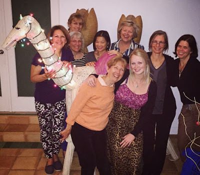 Exchange Authors: Front row, L to R: Kitty Morse, Kenna Jones. Middle row, L to R: Susan McBeth, Debbie Moderow, Marivi Solivan, Marybeth Holleman, Deb Vanasse. Back row, L to R: Kaylene Johnson, Kathi Diamant. Camel is a longstanding fixture at the Moroccan-style home of Kitty Morse.
