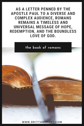 What We Can LearnThe Book of Romans stands as a theological masterpiece, providing profound insights into the core tenets of the Christian faith. Its teachings on righteousness, faith, grace, and the transformative power of the Gospel continue to inspire and guide millions of believers worldwide. As a letter penned by the apostle Paul to a diverse and complex audience, Romans remains a timeless and universal message of hope, redemption, and the boundless love of God.