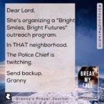 Granny Quinn’s prayer journal has remained a popular feature. She’s going on hiatus for a few months, but don’t worry! She’ll be back! She’s going to have a LOT to say about Mo and Bronwyn…