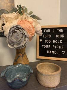 Meredith creates beautiful floral arrangements from flowers made from wood. For her, it’s a creative outlet that gives her a way to express a different aspect of her personality. It’s a stress reliever … well, except for when it gets her sideways with some criminal elements…but…you’ll have to read Break My Fall for the details on that!