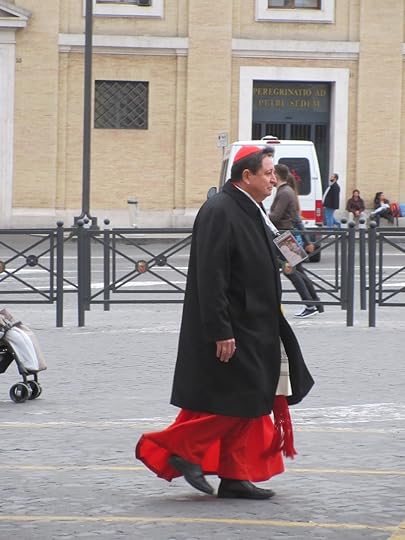 Here are a couple of cardinals I spotted in the square making their way to a private mass the day before. There were many different clergy from all around the world attending and the huge crowds of priests and tourists were buzzing with anticipation. These two men dressed in red are members of the College of Cardinals and either one could potentially be a future Pope.