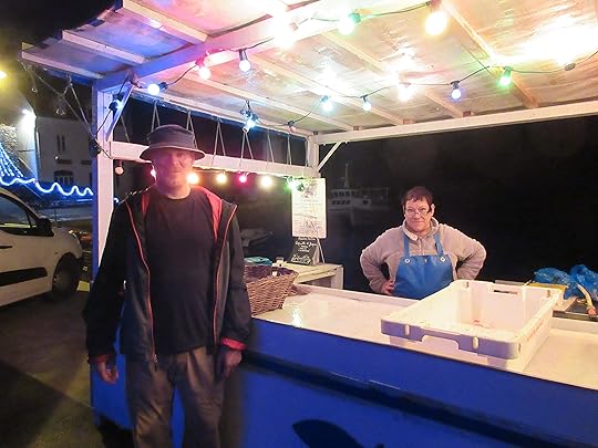 As the title suggests, one of the perks of living in a centuries old fishing village off the coast of France is the easy access to fresh seafood. About a hundred paces from my front door is a little kiosk that sells fresh fish each evening. I purchased seven fat, juicy scallops for six euros. And yes, I didn't overcook them! Two minutes each side as instructed by the friendly little lady behind the counter (who happens to be the wife of the fisherman who I hear puttering out each morning at about 7 a.m.)Please excuse halo effect caused by background lights. This one definately looks photoshopped!